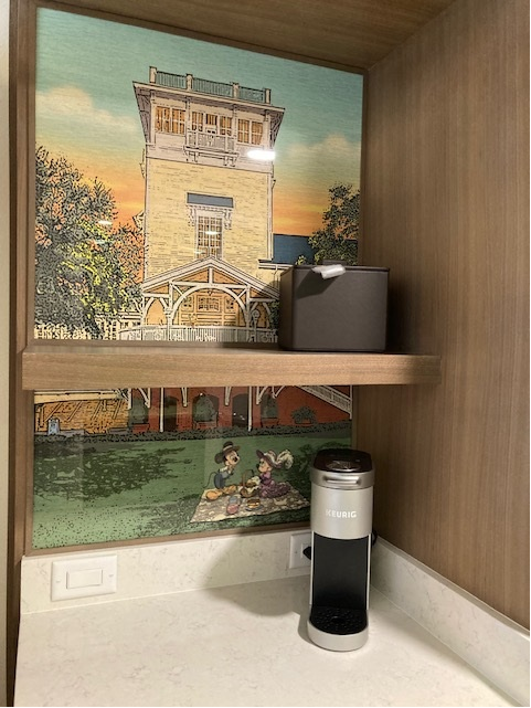 ディズニー・ボードウォーク・インのお部屋は、1920年代のアメリカの海辺のリゾートをテーマにしたデザインで、落ち着いた雰囲気の中にも華やかさを感じることができます。客室は広々としており、家族連れやカップルにとっても快適に過ごせる空間です。