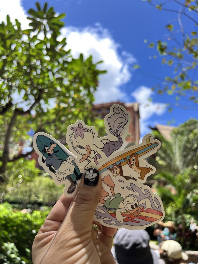 また、リゾート内を散歩していると、不意にキャストさんからシールやグッズをいただくことも。キャラクターやハワイのモチーフが描かれたそのデザインは、コレクション心を刺激するほどの可愛さ。大人の私でも、手にした瞬間に思わずにやけてしまいます。