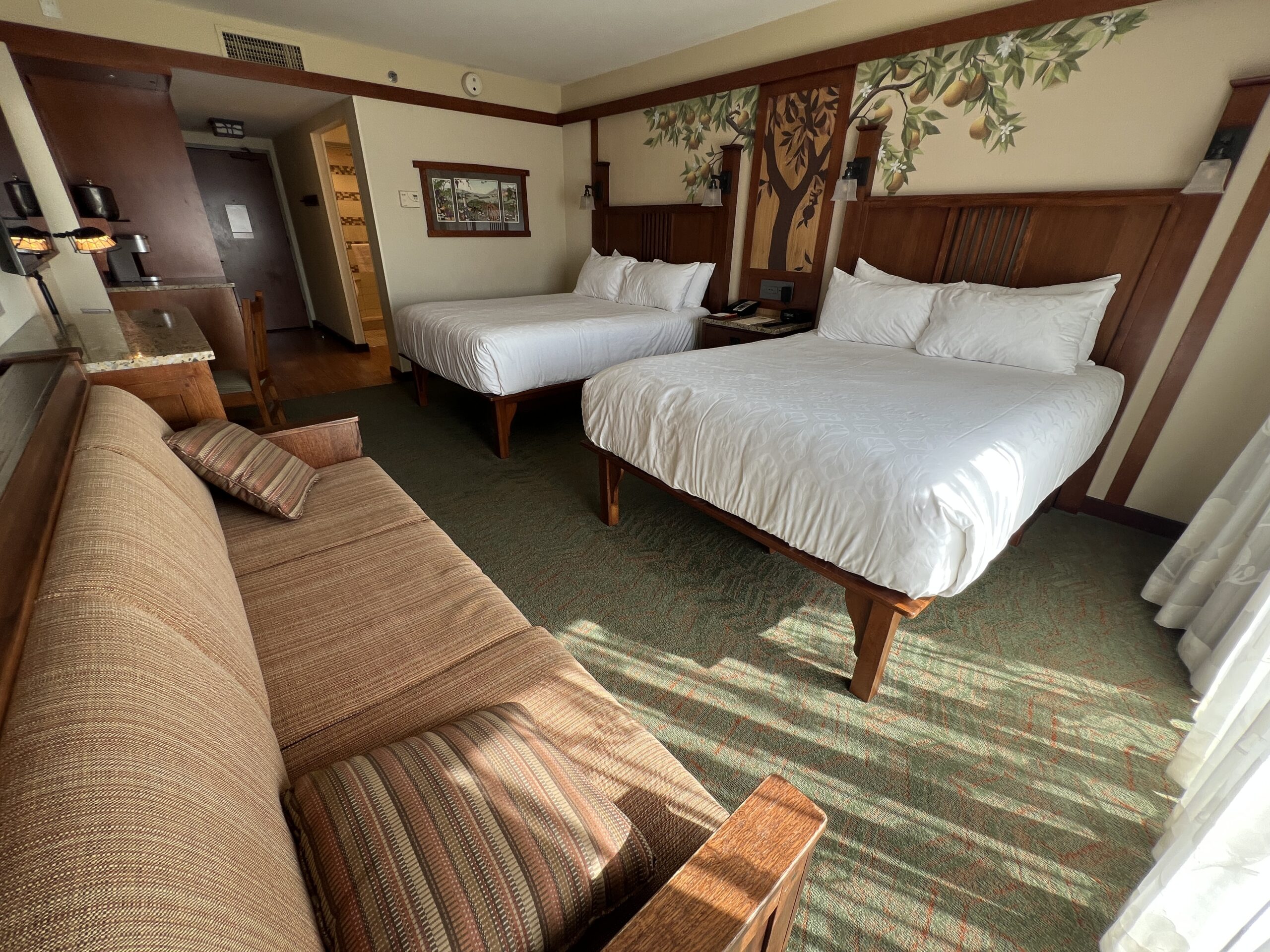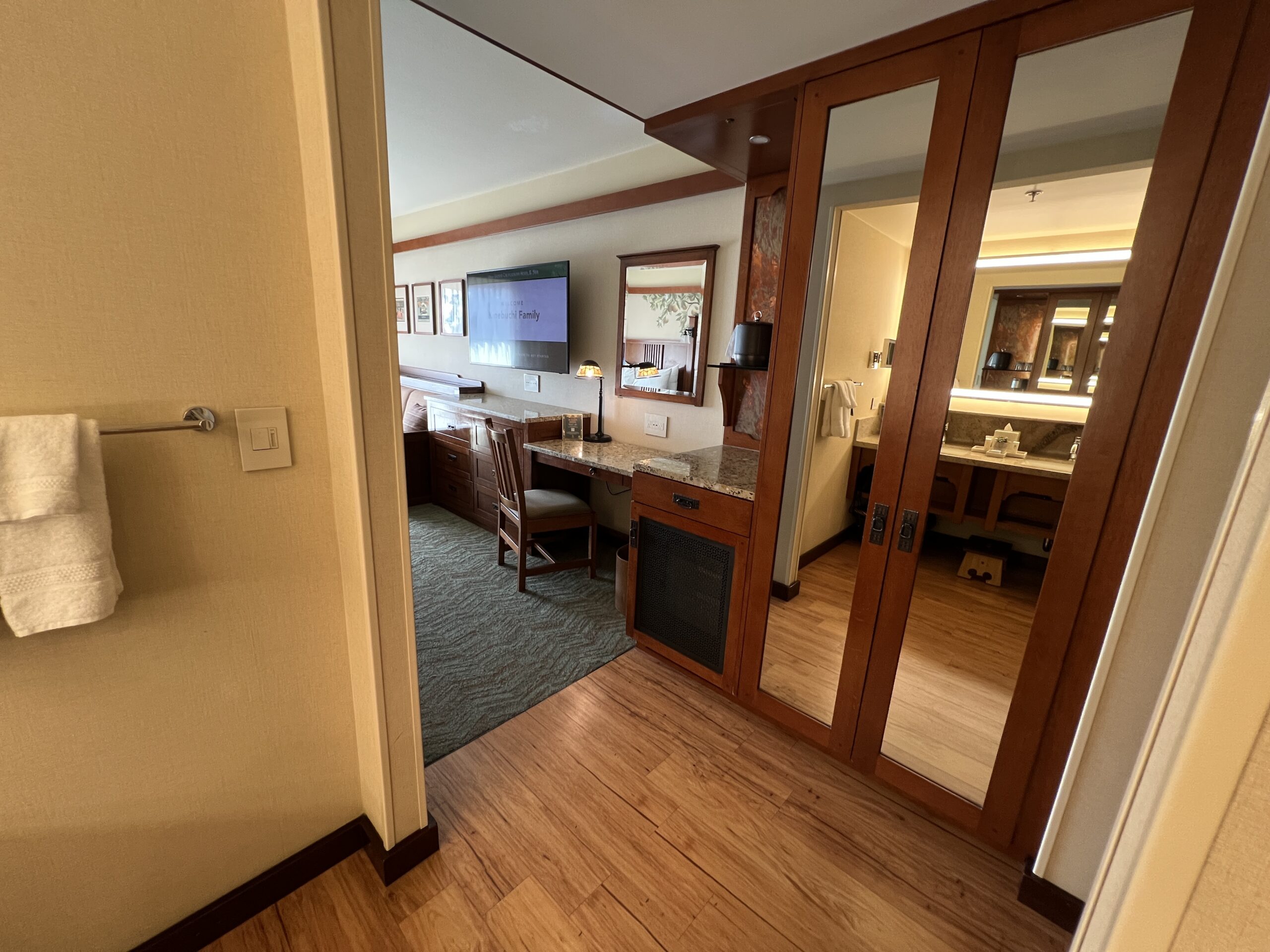 ディズニー・グランド・カリフォルニアン・ホテル&スパのスタンダード・ルームは、木の温もりに包まれた落ち着きと、随所に散りばめられたディズニーらしさが魅力のお部屋でした。