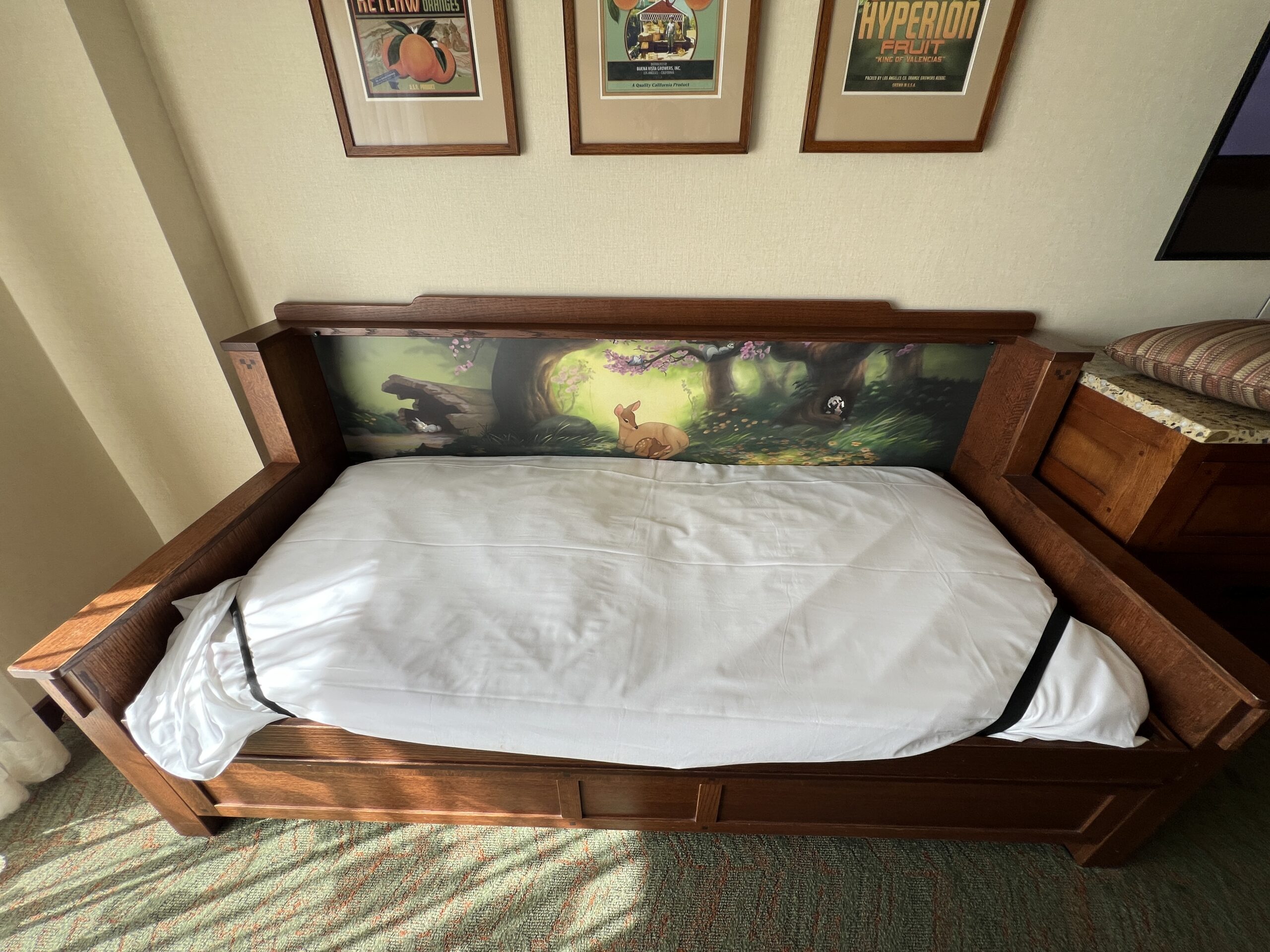 今回宿泊したお部屋にはデイベッドが付いていました。ソファを開くとベッドに変身!さらに、その内側にはディズニーらしい仕掛けが隠されています。