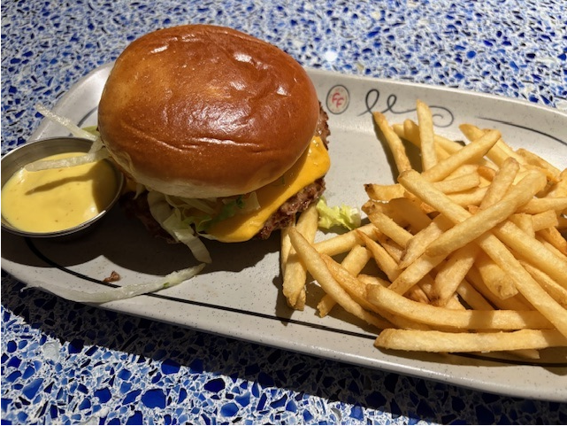 こちらでは、パテをその場で焼いてくれるので、ジューシーで香ばしいハンバーガーが楽しめます。焼きたてのパテがしっかりと肉汁を閉じ込めていて、ボリュームたっぷり。さらに、チキンテンダーもサイドメニューとしておすすめです。外はカリッと、中はジューシーで、どちらも絶品です。