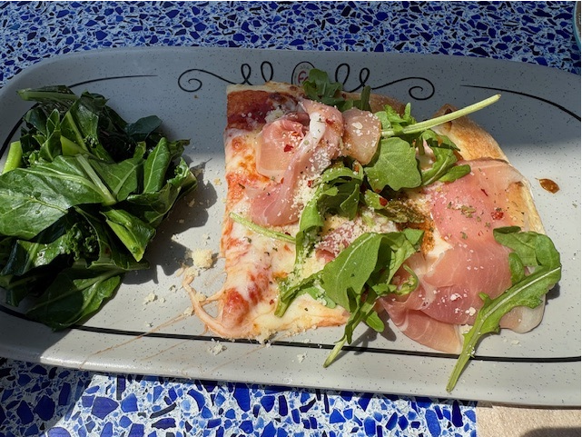 焼き立てのピザは格別!マルゲリータやペパロニなどどれも香ばしさとジューシーなピザを提供。ピザは通常夜中まで営業しているので、ついつい寝る前につまんでしまいます。個人的におすすめなのは、「プロシュートのピザ」。薄切りのプロシュート(生ハム)の塩気と、チーズとの相性が抜群なんです!