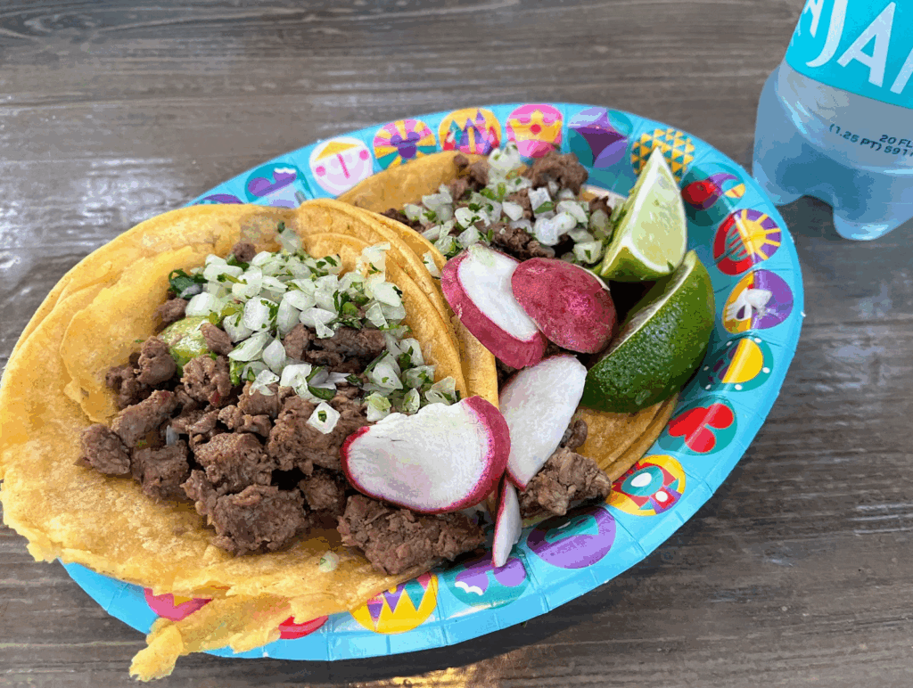 柑橘類でマリネしたグリルステーキのタコス。お肉がたっぷり。