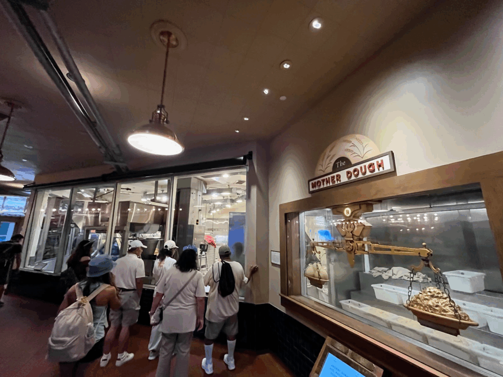 レストランではありませんが、アント・キャス・カフェの隣にはサワードウブレッドの製造過程をガラス越しに見学できるベーカリー・ツアーがあります。ウォークスルーで実際にパンを製造している様子を自由に見ることができます。アント・キャス・カフェの利用前にはぜひ立ち寄ってみて!