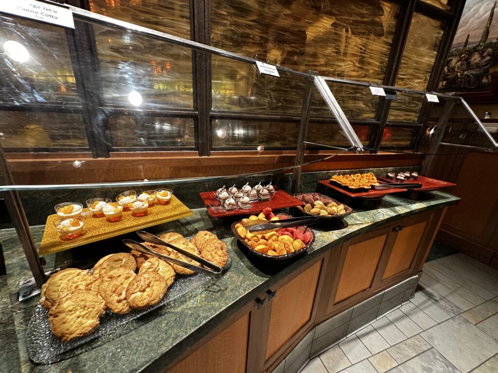 デザートステーションには、パンプキン・ブレッドプリン、パンナコッタ、チーズケーキ、マドレーヌ、クッキーやソフトクリームなどデザートが種類豊富に並んでいました🍰🍪🍦