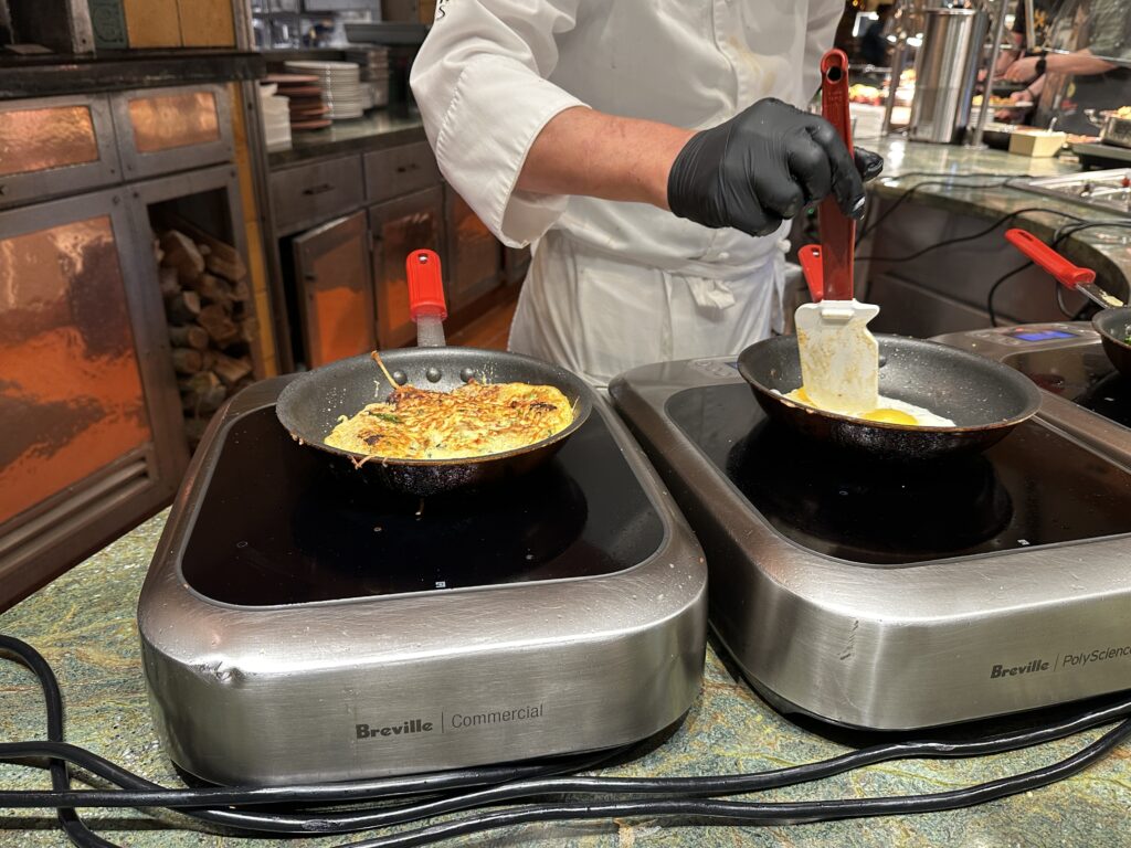 オムレツステーションでは自分の好きな具を入れてカスタムオムレツや目玉焼きなども注文できます。🍳