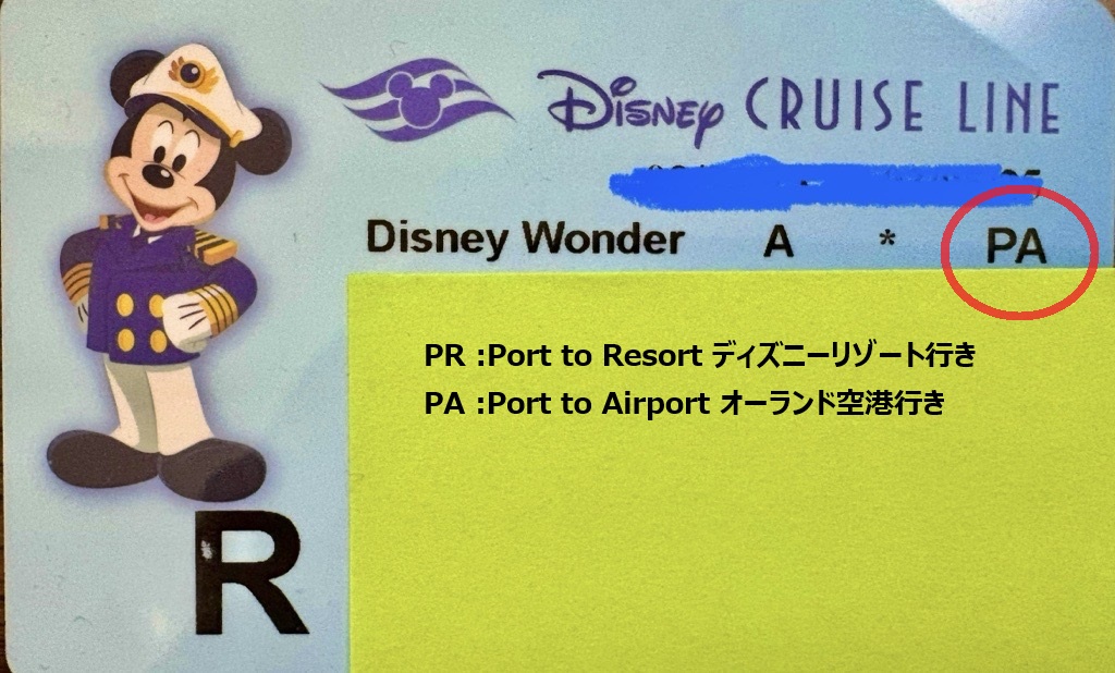 下船日のシャトルバスを事前に予約をしていると、ルームキーに行き先に応じてアルファベットが印字されています。船内では特に手続きは必要ありません。