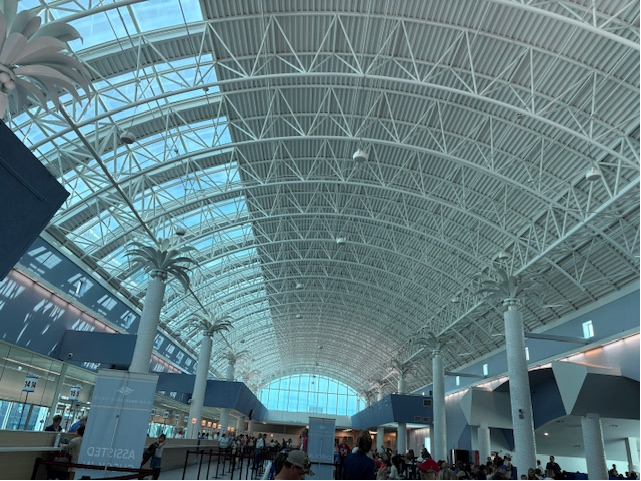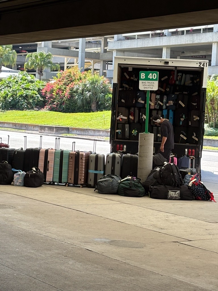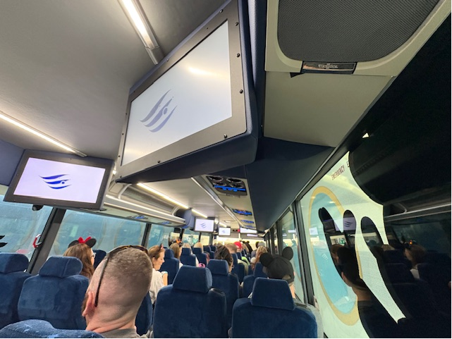 今回はオーランド空港からポート・カナベラル行きのバスを利用しました。バスの受付で、クルーズの乗船チェックインも一緒に済ませることができ、手続きがとても簡単になります。