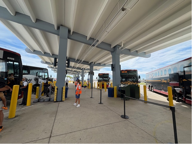 アメリカへ再入国を済ませてターミナル建物を出ると「Disney Transfer/ Transportation」 などと目印がでているのでバス乗り場に向かいます。
