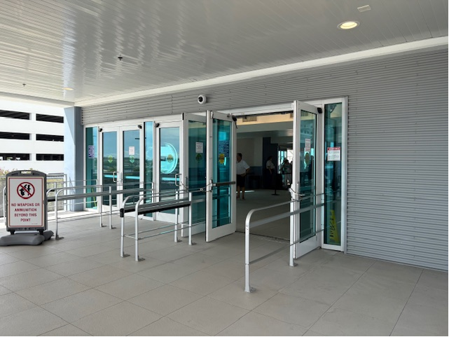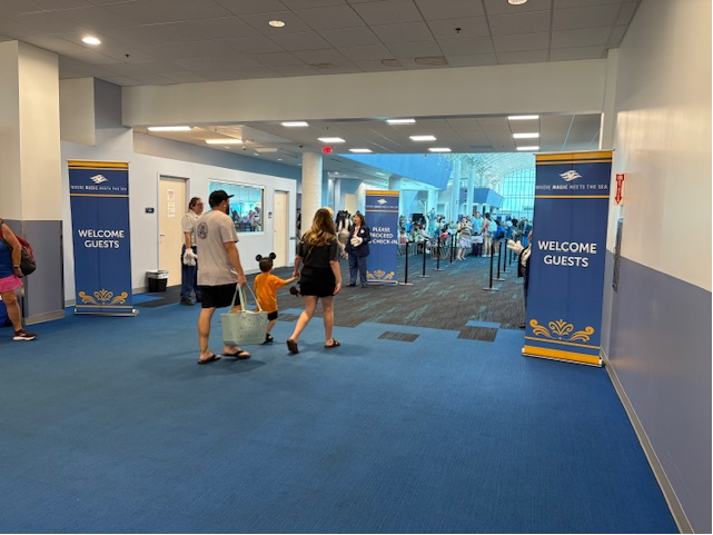ターミナルに到着すると、キャストさんが説明してくれるので、まずは少し車内で待機します。その後、ターミナルの建物に入って、セキュリティチェックを通過します。