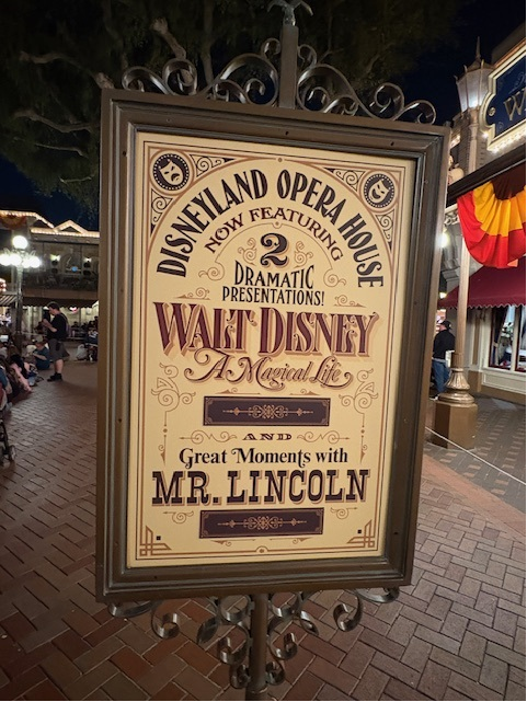 メインストリート・オペラハウスでは「ウォルト・ディズニー – ア・マジカル・ライフ」が上映中ですが、2025年9月現在お休み中の「グレート・モーメント・ウィズ・ミスター・リンカーン」が戻ってくると、今後交互に上映されます。訪問の際はディズニー公式サイトやアプリで運営スケジュールを確認してくださいね。