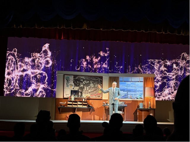 ロビーからシアターに入ると、ゆったりとした座席がならび、まずはウォルトの生涯を描く映像が流れます。現在のウォルト・ディズニー・ワールドCEOボブ・アイガーのナレーションで進んでいきます。