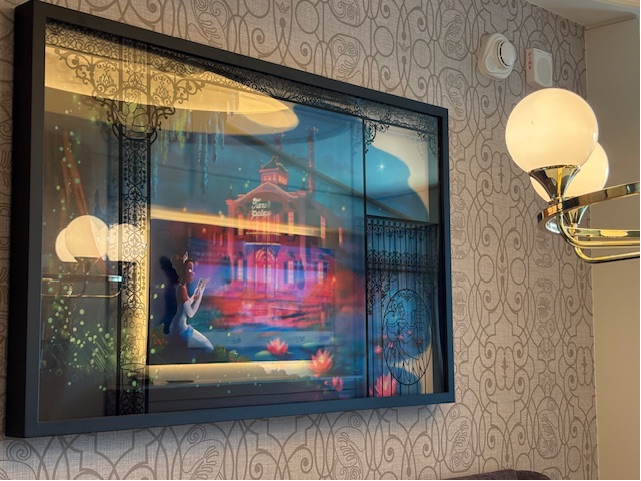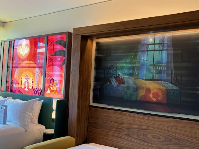 ロビーには、アニメーション制作時代のスケッチや原画をモチーフにしたアートが飾られ、まるでディズニーヒストリーを旅するような空間。静かで落ち着いていていました。
