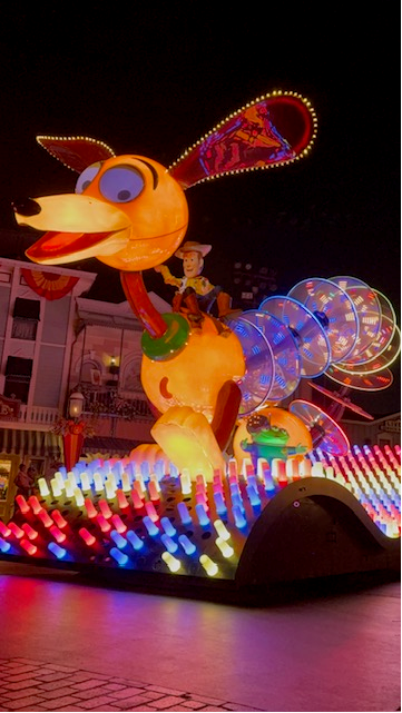 実はこのパレード、以前は香港ディズニーランドやアナハイムで人気だったもの。復活を心待ちにしていたゲストも多く、パークに漂うワクワク感がショー開始前から伝わってきます。「やっと見られる!」という期待感が、周囲の空気をさらに特別なものにしてくれます。また70周年仕様に曲がアレンジされたり少し内容に変更も追加されています。