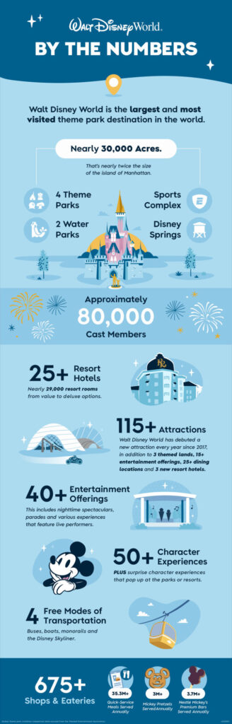 この記事のテーマである 「BY THE NUMBERS(バイ・ザ・ナンバーズ)」 とは、直訳すると「数字で見る」「データで読み解く」という意味。つまり今回は、夢の王国を“感覚”ではなく“数字”で覗いてみる ― そんな少しユニークな視点で、ウォルト・ディズニー・ワールドの本当の姿を紐解いていきます。
