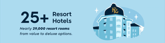 滞在スタイルもまさに“無限”。バリュークラスの手軽な宿から、贅沢なデラックスリゾートまで25以上のホテルが点在。客室数は約29,000室にのぼり、滞在そのものが物語の一部になります。
