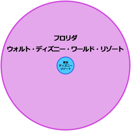 ディズニー・ワールドの広さは、『東京山手線の1.6倍』とよく言われますので、聞いたことある人も多いかと思います。でもそれって、東京の人じゃ無いとピンと来ませんね。なので、もう少し他の例えでご説明します。