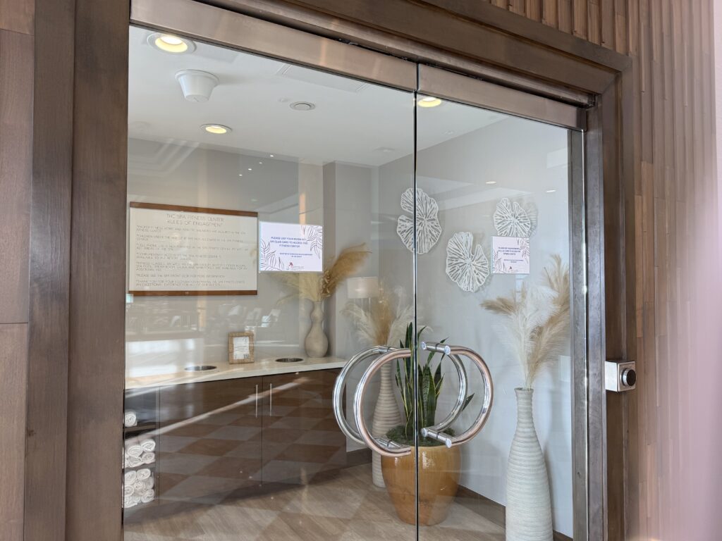 プレビュー・クルーズに乗船するゲストが多く宿泊していたためフロントデスクやベルデスクは混雑していました。布製のリストバンド型のルームキーを受け取りました。