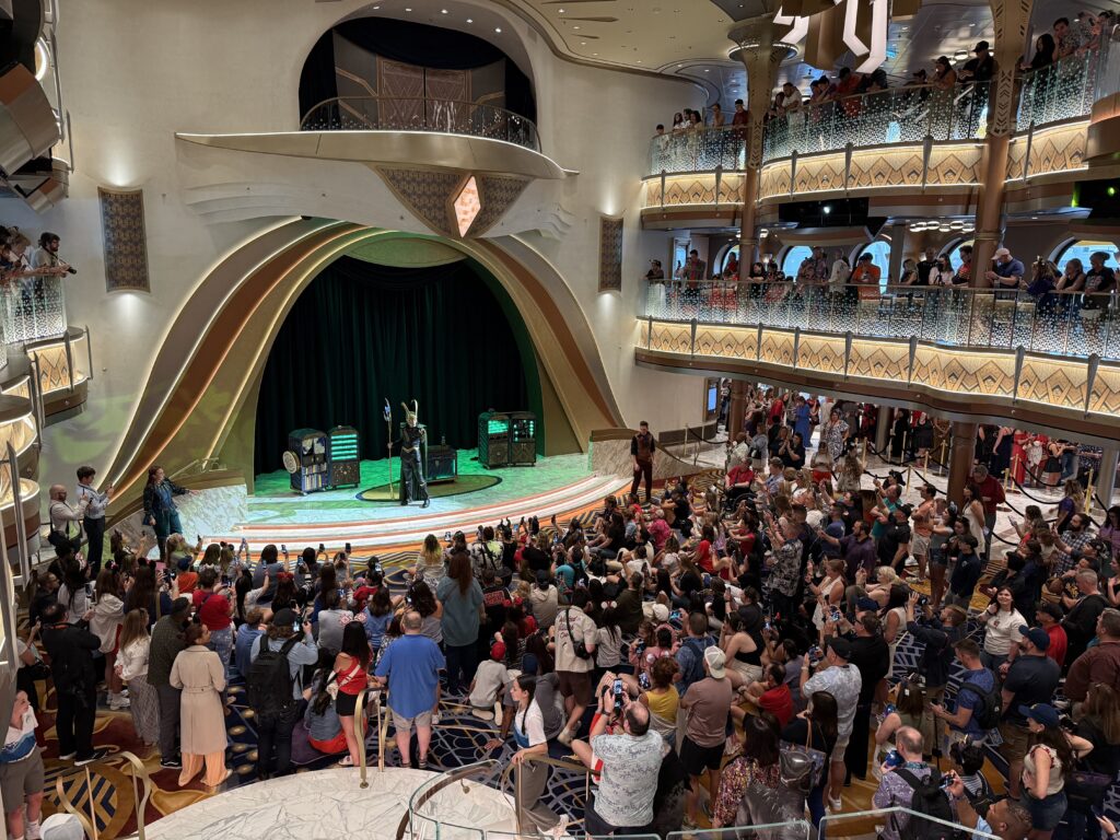 出港後は多くのゲストがショップの開店を待って長い列を作っていました。私もその一人でしたが、待っている間にグランド・ホールで開催されていたサウンド・オブ・ワカンダの素敵な音色を楽しみました。