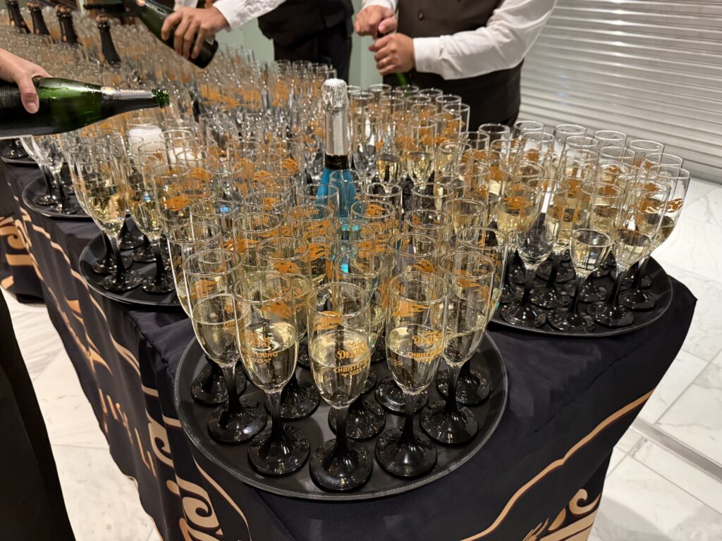 通常は夕方に出港しますが、セレモニーの関係で夜の出港になりました。夜の出港パーティーはあまりないので、貴重な体験になりました。