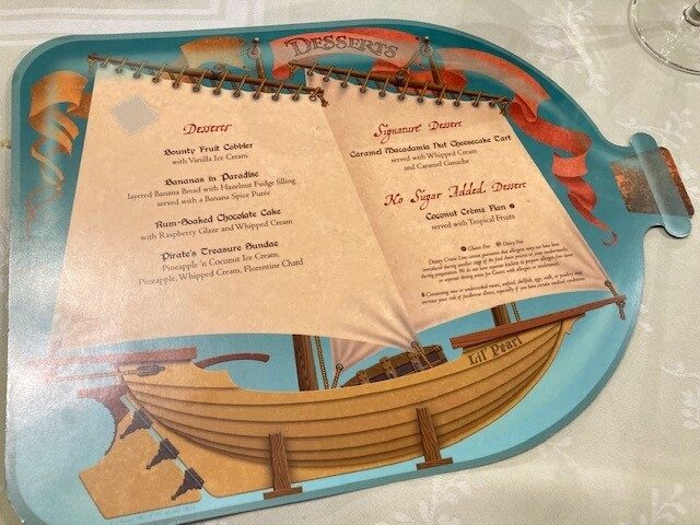 さらに、夕食ではパイレーツメニューが楽しめます。『パイレーツ・オブ・カリビアン』のキャラクターにちなんだメニューの数々には、カリブの風味を感じる料理も豊富にラインナップ。