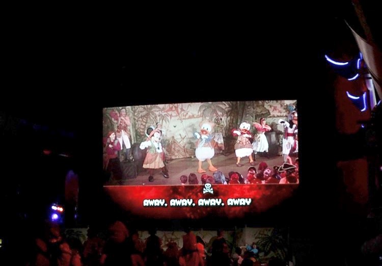 パーティミュージックが鳴り響く中、ディズニーの仲間たちと大盛り上がり!海賊たちも出てきて、選ばれたゲストはステージに立つ機会も・・・。ミッキーの登場の仕方にも注目です!