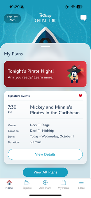 パイレーツナイトの日は夕方頃に船内の様子が変わり始め、船内BGMもいつのまにかパイレーツテーマの曲が聞こえてきます。