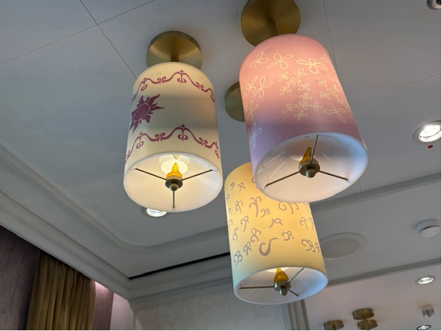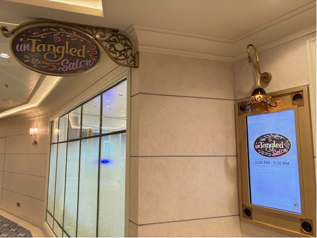 美しさを整える「アンタングルド・サロン Untangled Salon」は、美容院兼ビューティーサロン。映画『塔の上のラプンツェル』をモチーフにした内装は、アートや映画に登場するようなランタンの照明で飾られ、淡いパープルやゴールドのアクセントが華やかです。デッキ4船後方に位置し、大人のみならず、ティーンやお子様も利用できるサービスがあります。