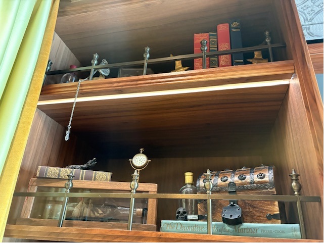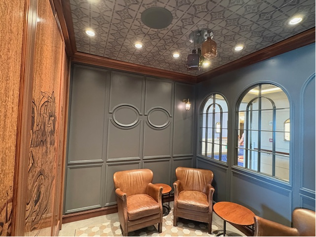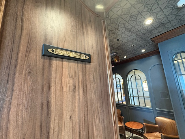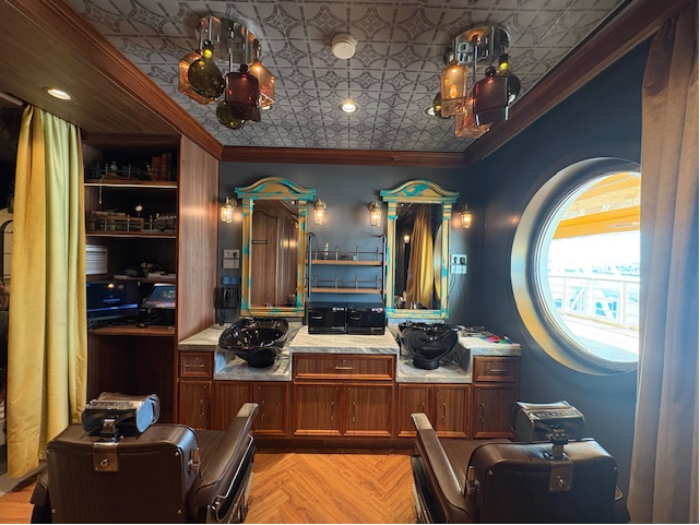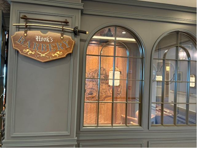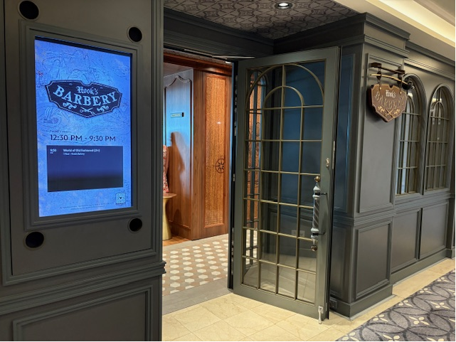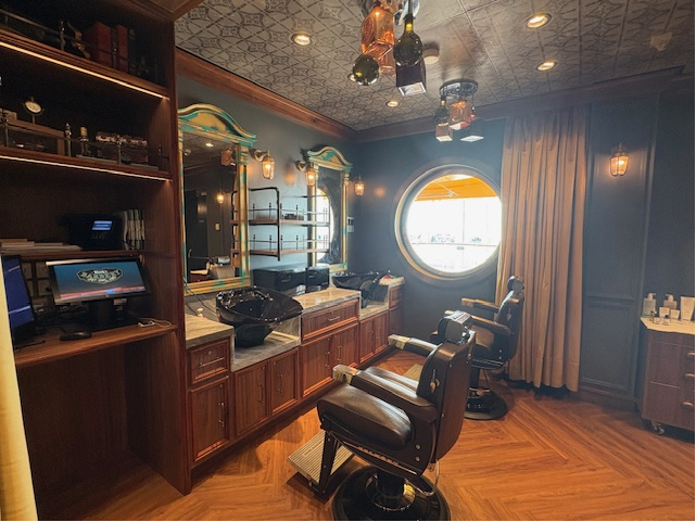 最後に紹介するのは大人の遊び心あふれるバーバー「フックズ・バーバリー Hook’s Barbery」。名前の通り、映画『ピーターパン』のフック船長をテーマにした理髪店で、隠れ家のような雰囲気があります。デッキ4後方、アンタングルド・サロンのちょうど反対側に位置します。