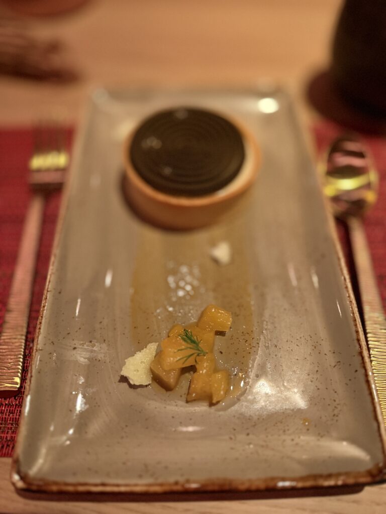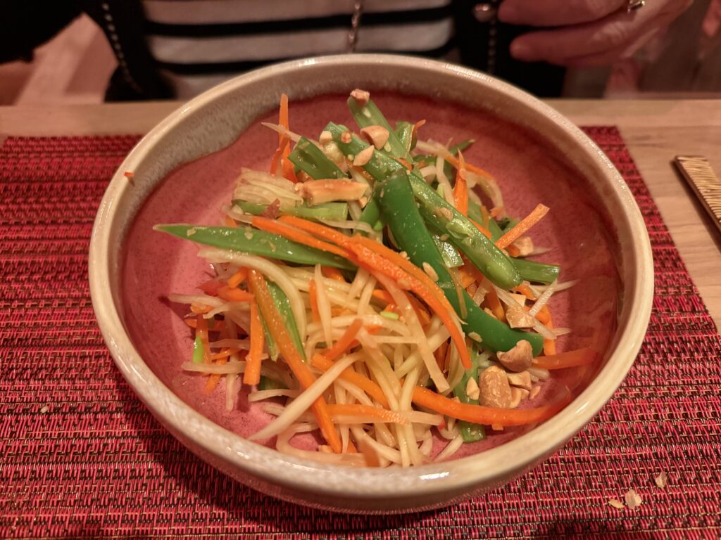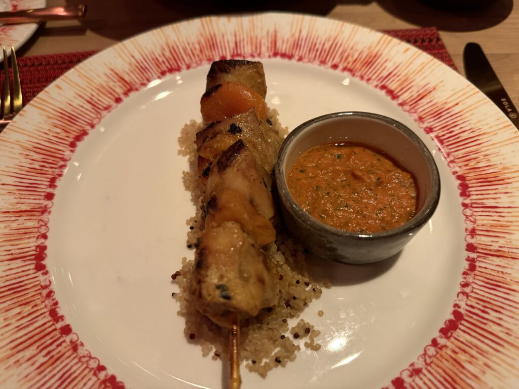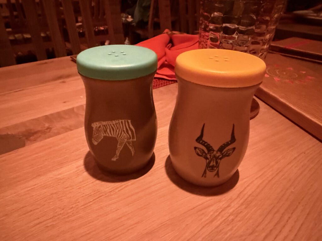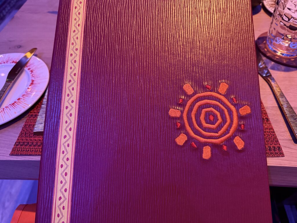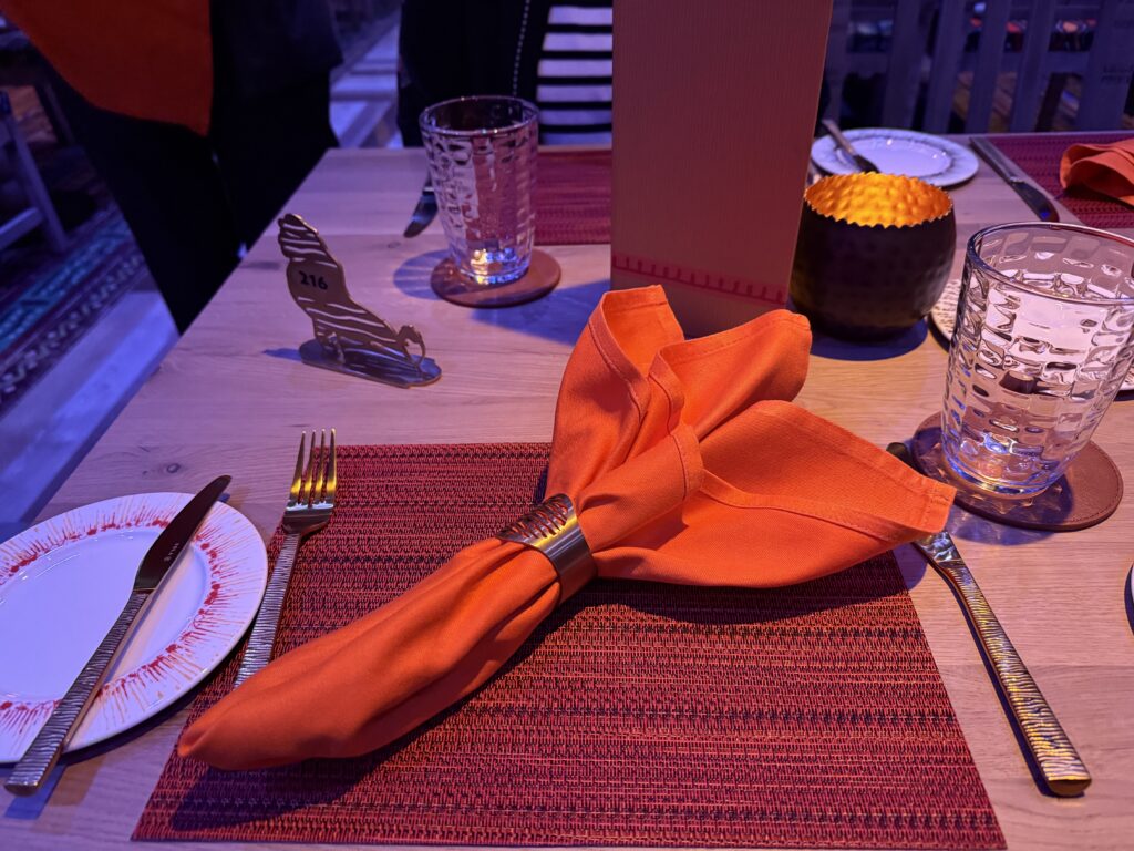 明るい色のナプキンやお皿に反し、レストランは暗い照明になっていました。メニューを見るのも少し大変でした。