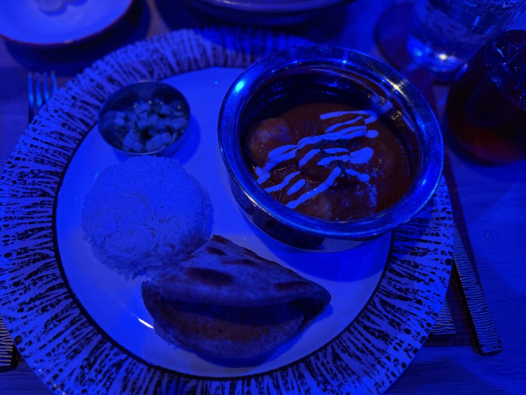 エキゾチックなメニューが多かったように思いました。写真が暗くて残念ですが、海老のカレーがおいしかったです。お米が恋しくなったときにもおすすめです。サーバーさんのおすすめはプライム・リブでした。