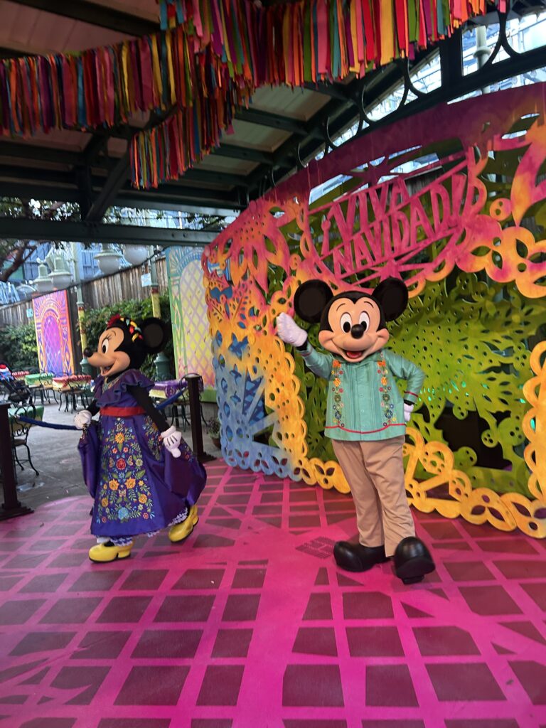 Disney Viva Navidad! Street Partyに登場するコスチュームのキャラクターグリーティングもあります。ちょうどミッキー・ミニーからグーフィーに変わるところで、その前にはドナルド、ホセ、パンチートの三人の騎士のグリーティングもやっていました。なかなか長いグリーティングの列で、キャラクターが入れ替わるのでお目当てのキャラクターに会えるまで何度も列に並んでる人も!