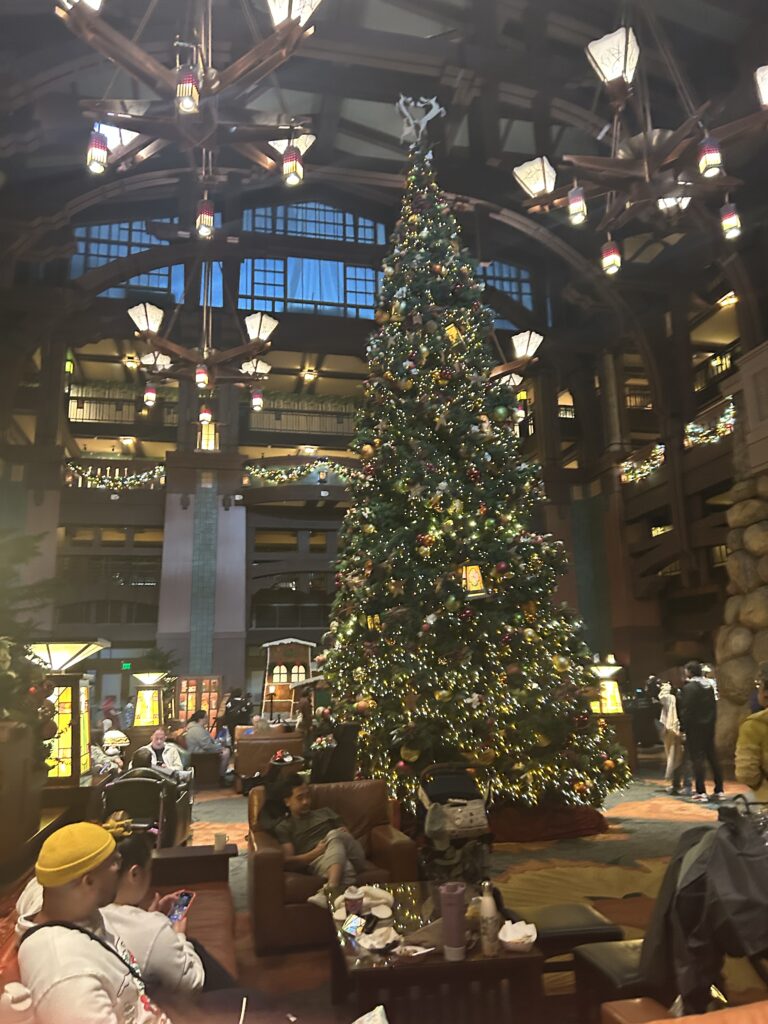 パークに行く途中に立ち寄ったグランドカリフォルニアン・ホテルの中にはドーンと大きなツリーが。ホテルの雰囲気と綺麗なツリーでうっとりです。