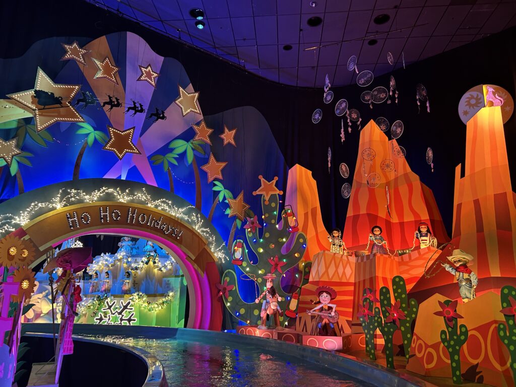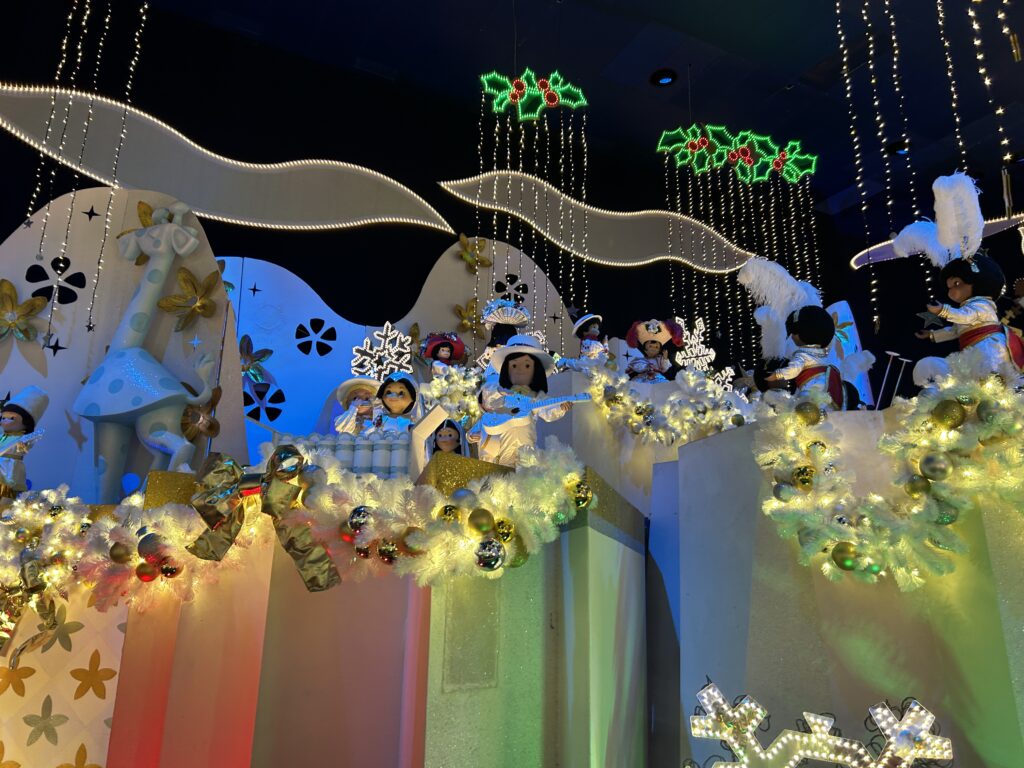 もちろんアトラクションの中もホリデー仕様に大変身しています。ジングルベルの音楽も流れていてクリスマスムードたっぷりです。