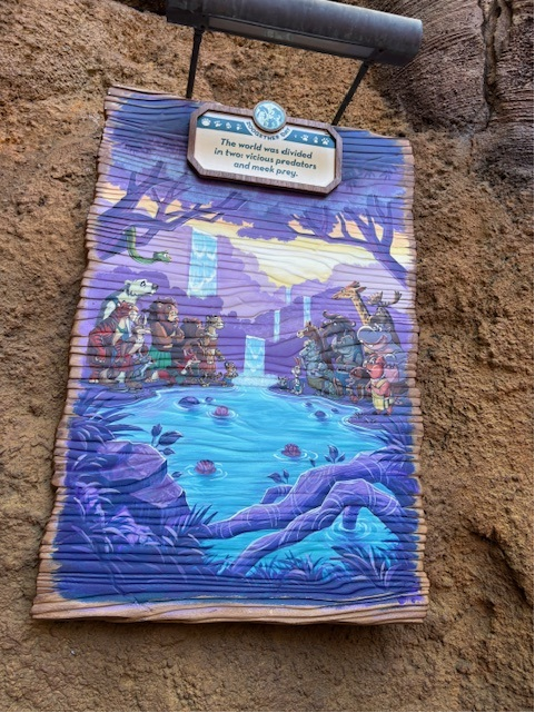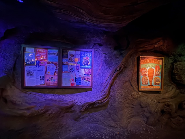 待ち列を進んでいくと、ズートピアのキャラクターや世界観を感じられるポスターや展示物がたくさんあり、待ち時間もあっという間に感じられます。