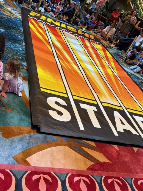 ディズニー・クルーズラインでは、赤ちゃんたちが主役になる 「ハイハイレース」 が開催されます!ロビーアトリウムやグランドホールで行われるこのレースは、毎回とても盛り上がります。(ウィッシュクラスの船では、ヒーロー・ゾーンで行われることもあります)