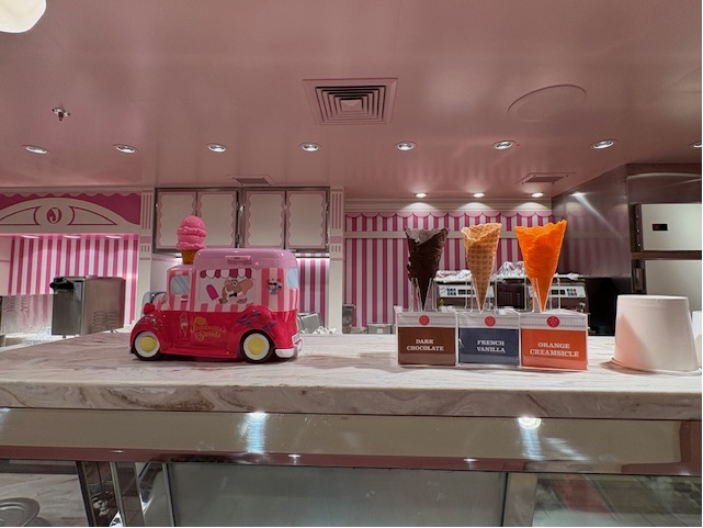現在はクラシック2隻を除き、各ディズニー・クルーズライン客船で下記のスイーツショップがあります。それぞれの船で各テーマに合った内装と世界感になっているので、ぜひ一度足を運んでみてください。