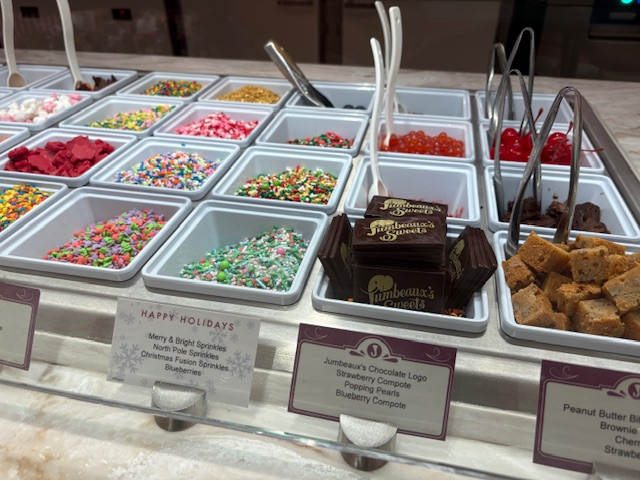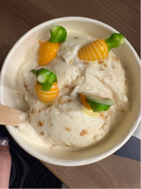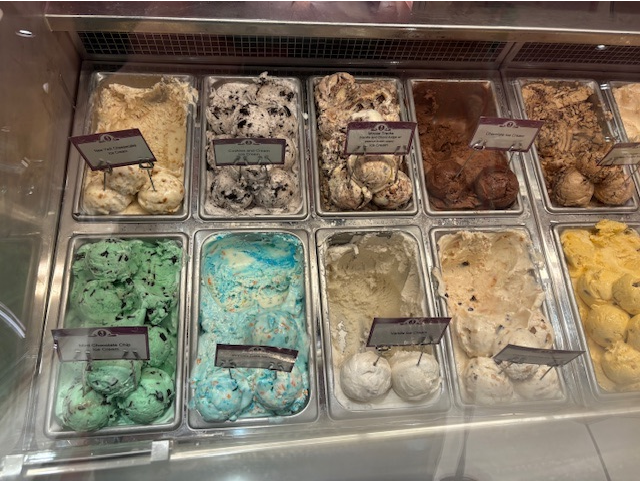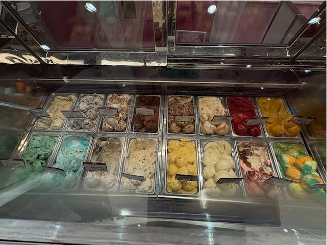 アイスをサーブしてくれたクルーに最近の人気フレーバーを聞いてみたところ、バニラやチョコレートといったシンプルな王道フレーバーがよく出るとのこと。これだけたくさんの種類が並んでいても、やはりクラシックな味の人気は変わらないようです!