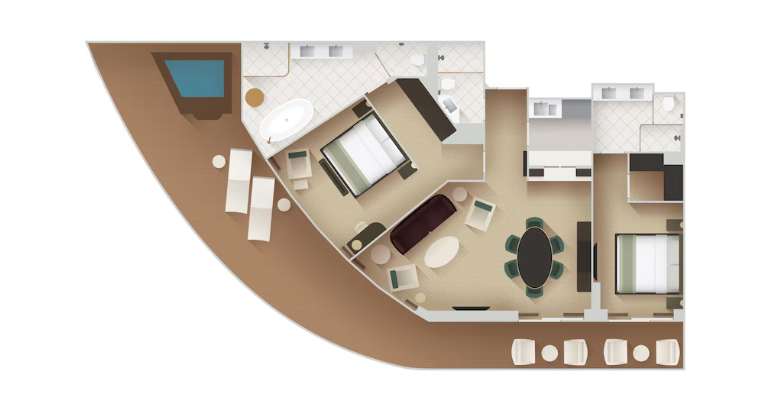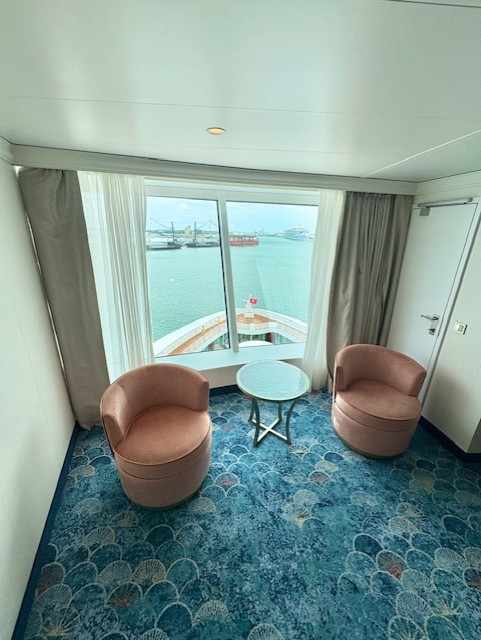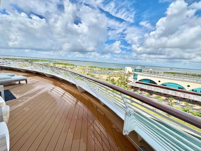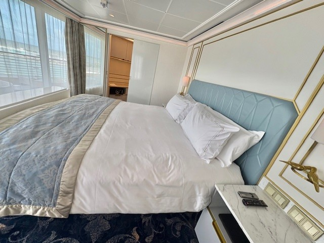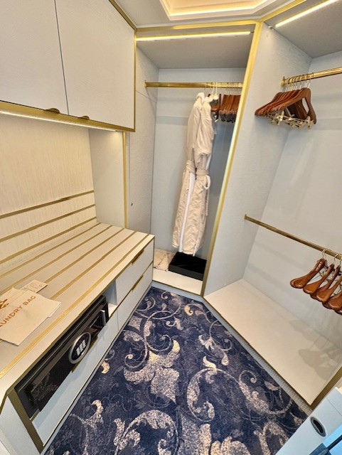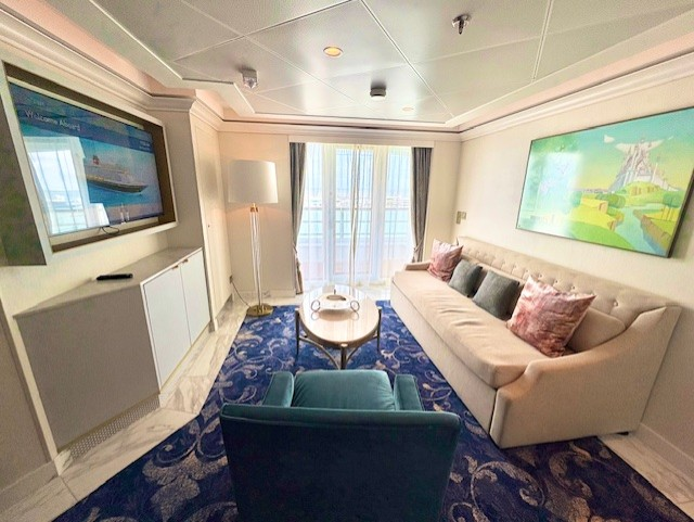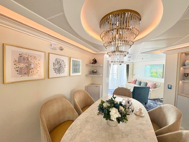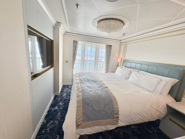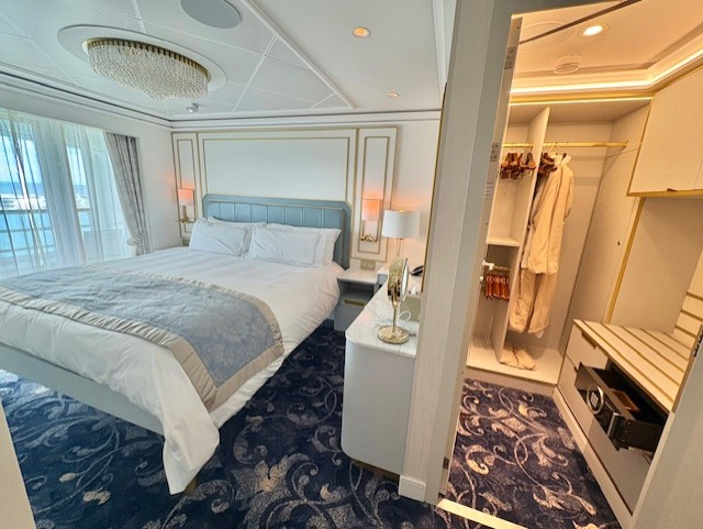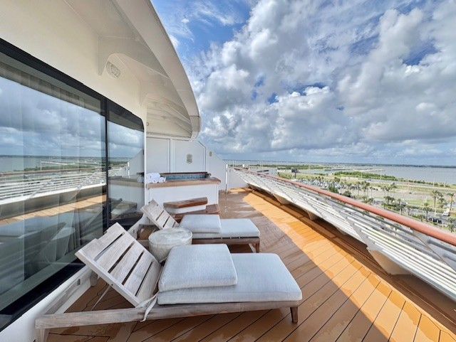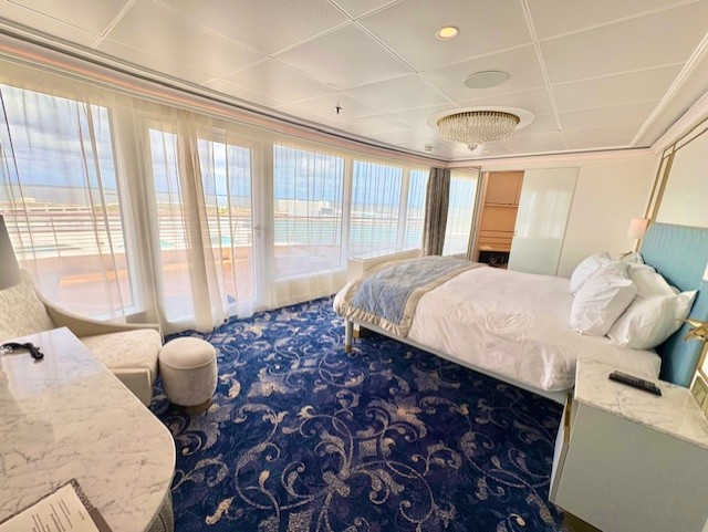 注意事項としては、このスイートはデッキ10の船最後方に位置します。そのため、コンシェルジュラウンジのあるデッキ12船前方より離れてしまう点、移動には時間がかかるので留意が必要です。