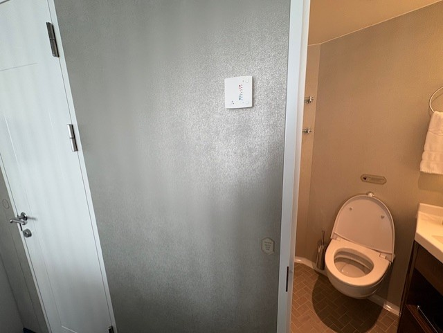 バスルームはトイレとシャワールームが2つに分かれた「分割型」で、片側にシャワー・浴槽・洗面台、もう片側にトイレと洗面台を備え、複数人でも快適に利用できます。